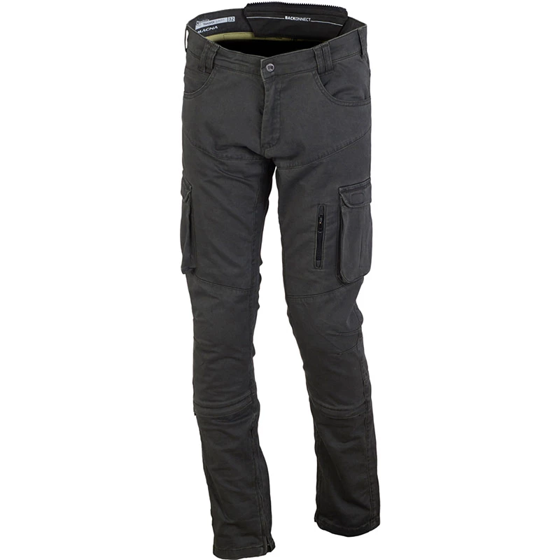 Stretch. Cargo Style, Kevlar, Waist lock lite, Quick pocket, Backonnect. Colors: Black, green. Comfort: Stretch. Functionality: Connects with jacket. Protection accessible outside. Materials: textile. Safety: Short connection zipper. Prepared for hip protector. Protection on knees. Aramid Reinforcements. Style: Custom Retro, Touring Adventure. Suitable for: Men. Technology: Backonnect. Quick-pocket. Waist Lock. Waist Lock Lite. Weather type: Warm. Technical information. Homologation: CE Level 1 knee protection.