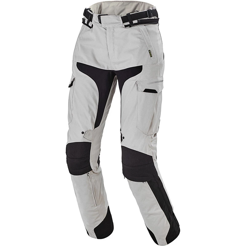 Direct laminated, Durylon. Colors: Black. Comfort: Grip Print. Removable lining. Stretch. Ventilation zippers. Waterproof. Functionality: Adjustable straps. Connects with jacket. Prepared for suspenders. Materials: Textile. Safety: Long connection zipper. Short connection zipper. Heat shields. Prepared for hip protector. Protection on knees. Laminated reflection. Style: Touring Adventure. Suitable for: Women. Technology: Waist Lock. Weather type: All weather types. Technical information. Homologation: CE Level 2 knee protection. Materials:Poly 600. Ripstop.