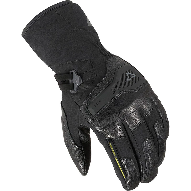 Ergo thumb, 30ยฐ buckle, Touch tip, Screencleaner. Colors: Black. Comfort: ergonomic thumb. Screencleaner. Waterproof. Functionality: Adjustable straps. Operate touch screen. Materials: Leather. Textile. Safety: Protection on knuckles. Protection on palm. Style: Touring Adventure. Suitable for: Men. Universal. Women. Technology: 30 Degree Buckle. Ergothumb. EVA Palm. RISC protection. RISC Knuckle. Touch Tip. Raintex. Weather type: All weather types.